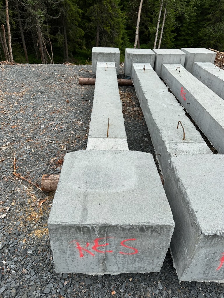 Betongfundament er 5,5 m lange. Portåpning blir på 4-4,20 m avhengig av størrelse på portstolper,